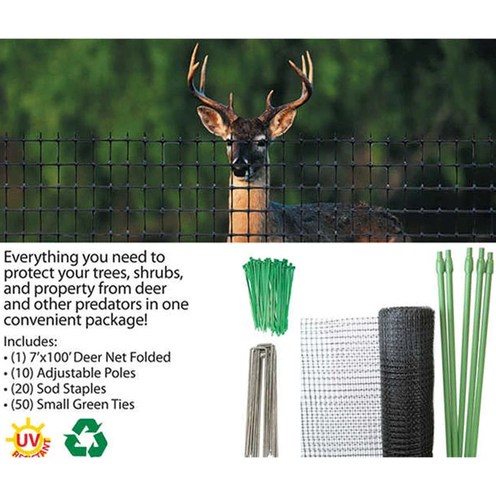 A convenient do-it-yourself kit. Protect your plants and property from deer and other predators with this handy all-inclusive kit. It has all the components you need to set up a fence quickly and easily. This is heavy duty deer fencing. Included are: