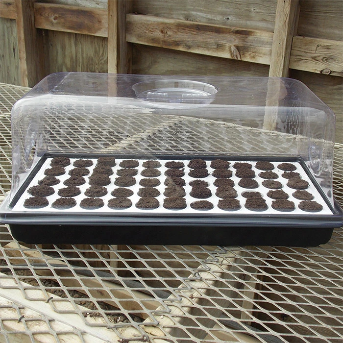 Never over-water again! Everything you need to start seeds and cuttings. This unique float system gives plants constant access to the ideal air-to-water ratio they need for optimum growth. The kit comes complete with a heavy-duty 20.5″ x 10.5″ x 2.5″ seed tray, a 7″ high dome fitted with 3 vents for air circulation, a 55-cell reusable floating styrofoam insert with large 1-1/2″ cells that encourage deep root growth, plus 55 aerated Q-Plugs. The sponge-like Q-Plugs, composed of organic growing media, drain, yet retain water and remove from the insert easily without damage to plants.